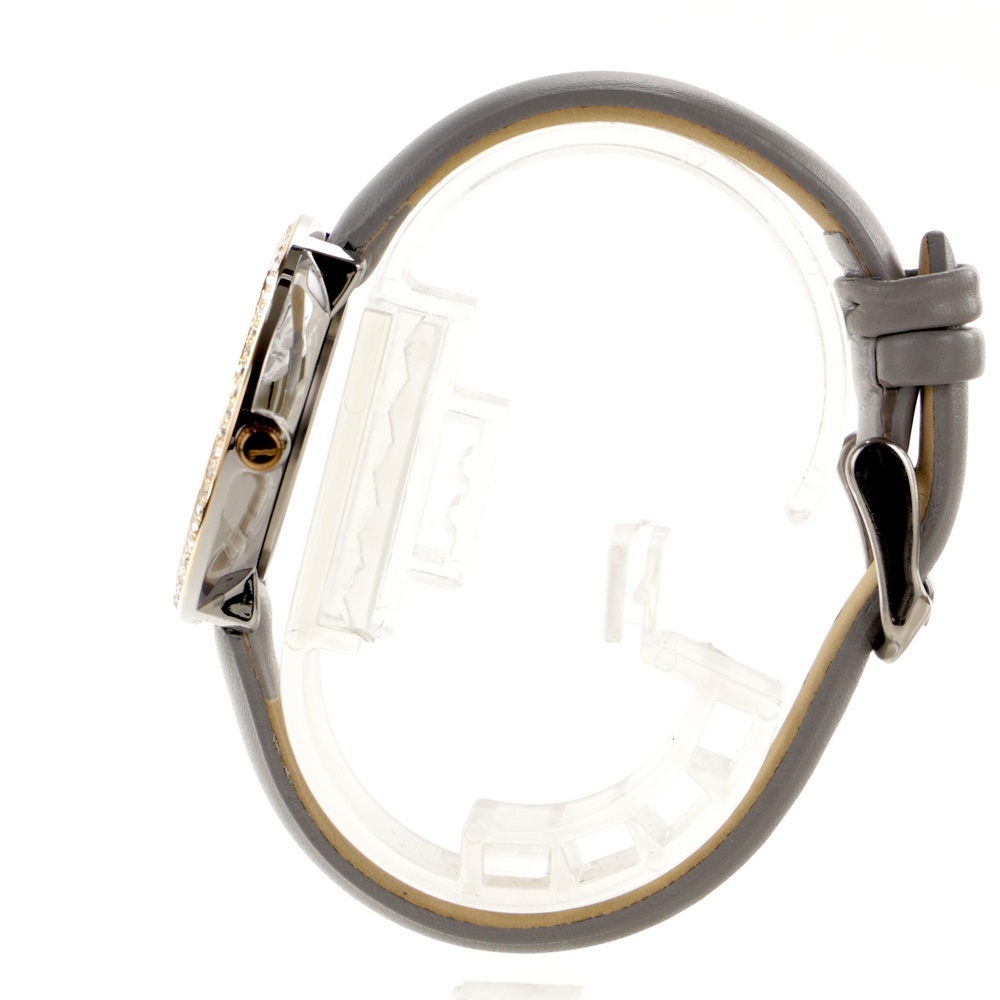 Elegancki model na skórzanym pasku,doskonały na każdą okazję. Zdobiona kamieniami koperta typu slim jest z utwardzoną powłoką bez niklu ,czyli antyalergiczna. Zastosowano wysokiej jakości japoński mechanizm VJ20. Średnica wynosi 33 mm,grubość 7mm. Cena zawiera eleganckie ,firmowe pudełko i torbę. Gwarancja 3 lata.