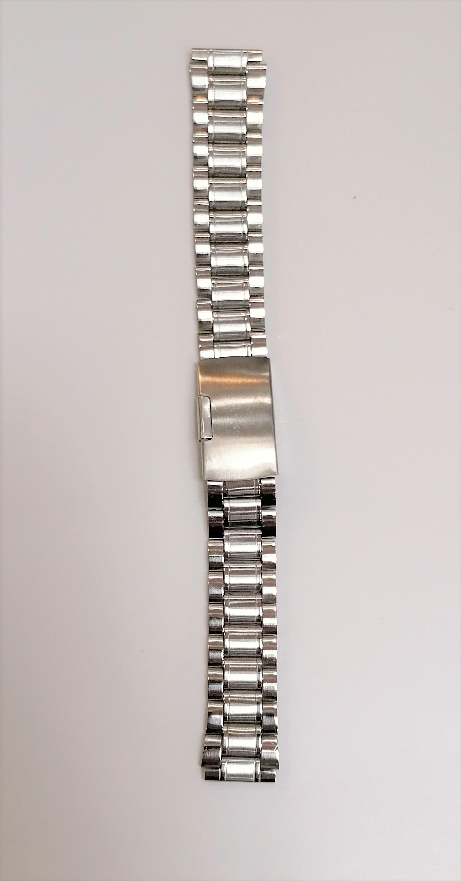 Bransoleta stalowa do zegarka w kolorze srebrnym , szerokości 18 mm , długość całkowita 18,5 cm.