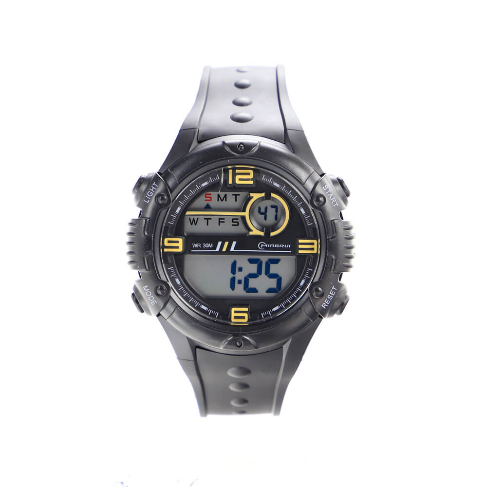 Typowo sportowy ,ciekawy design koperty i wyświetlacza wskazującego godzinę, date,funkcję budzenia i stopera,podświetlenie cyfr.Wodoszczelnośc 3 ATM pozwala na krótki kontakt z wodą podczas mycia raklub deszczu. Średnica koperty wynosi 46mm ,grubosć 14mm. Gwarancja 2 lata. Instrukcja w języku polskim.