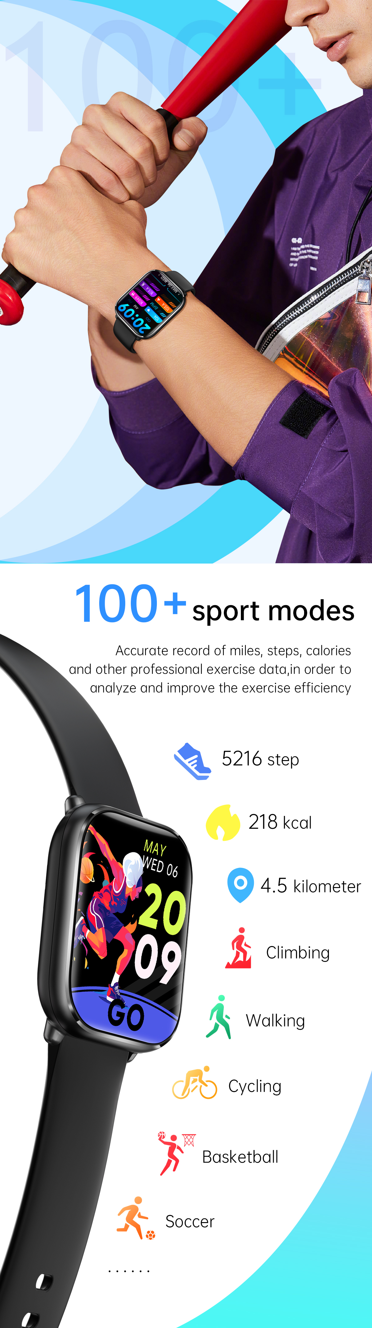 5. Pozostałe funkcje: Tryby treningowe (8), przypomnienie o piciu wody.