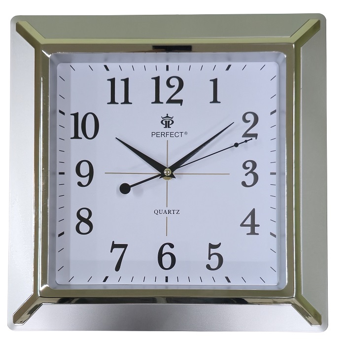Czytelny zegar firmy Perfect, w kolorze srebrny.