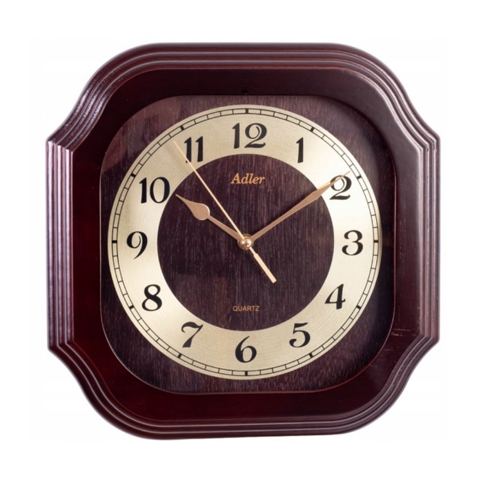 Czytelny zegar firmy Adler, w kolorze dąb.
